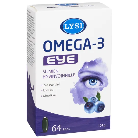 Lysi Omega-3 Yey (Лиси Омега 3 для глаз) - это диетическая добавка, которая состоит из жирных кислот DHA, цинка и витамина B2, которые способствуют поддержанию нормальной работы зрения. Капсула также содержит лютеин, зеаксантин, антиоксиданты, витамины С и Е, а также экстракт черники. Идеально подходит для пожилых людей, тех, кто носит контактные линзы, так же подходит для всех людей с чувствительной кожей. Продукт содержит важные для глаз питательные вещества и хорошо подходит для использования с увлажняющими глазными каплями. Омега-3 для глаз - отличная добавка для ваших глаз и поддержания нормального зрения.