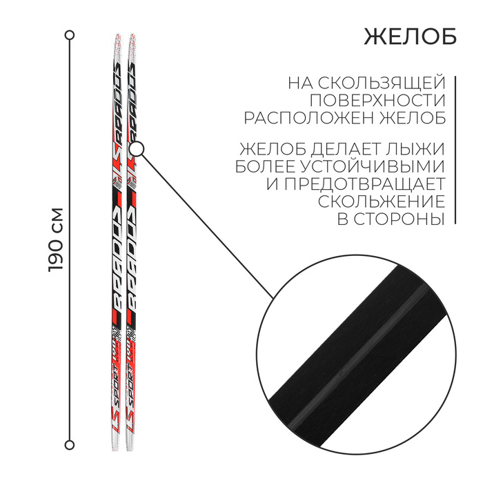 Лыжи пластиковые, 190 см, цвета МИКС — Характеристики