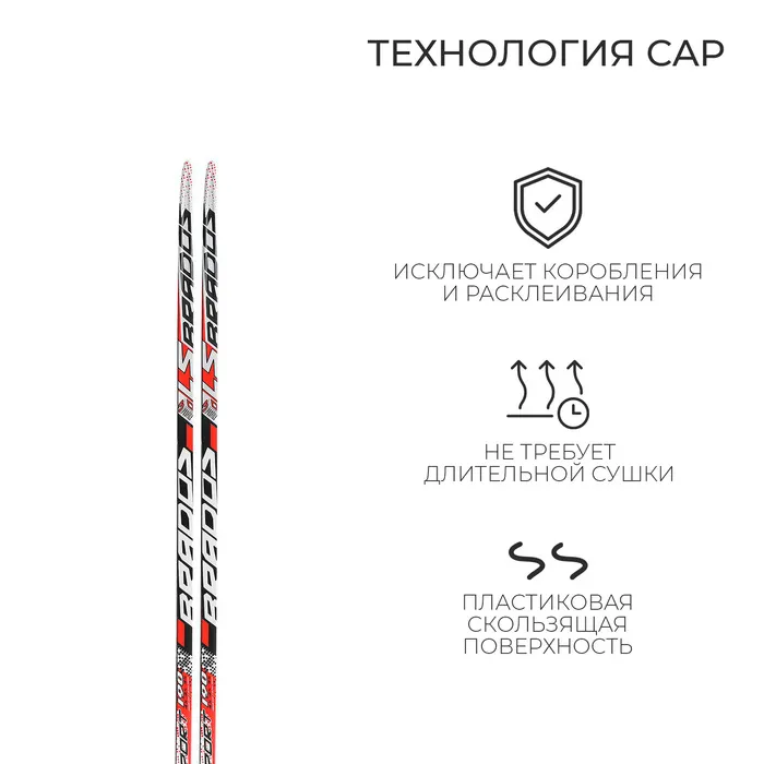 Лыжи CAP более долговечны и привлекательнее с точки зрения дизайна. Скользящая поверхность покрыта экструдированым полиэстером.