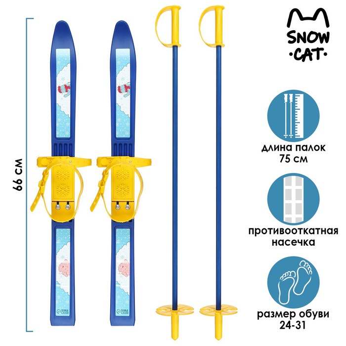 Лыжный комплект детский: пластиковые лыжи 66 см с насечкой, палки 75 см «Олимпик Монстрики» — Характеристики