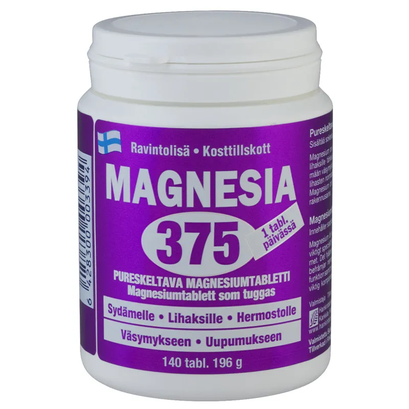 Магнезия 375 – это надежный источник магния, необходимого для поддержания здоровья вашего организма. Обратите внимание, что мы постоянно обновляем информацию о продукте. Рекомендуем всегда проверять данные на упаковке.