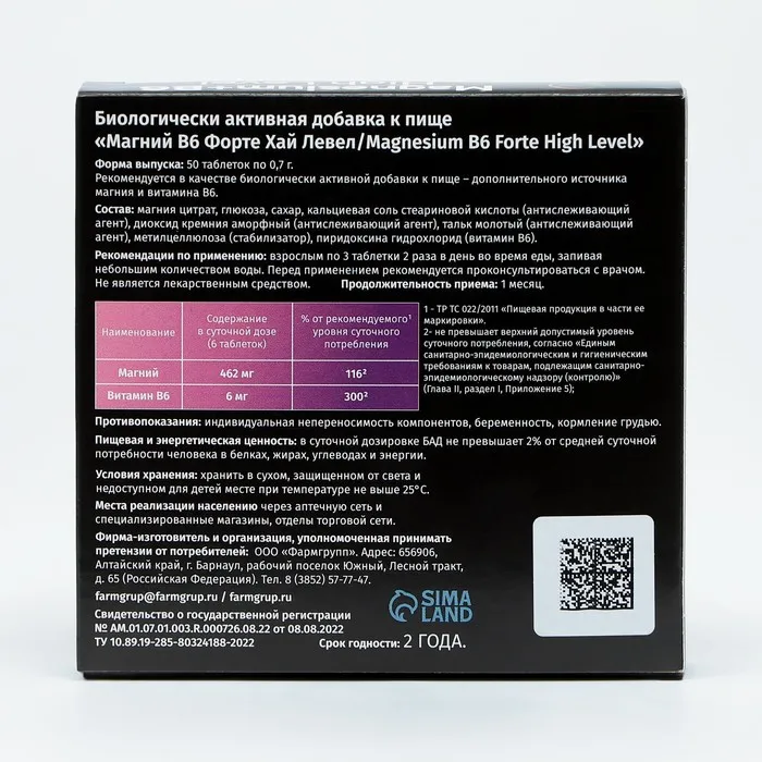 Магний B6, 50 таблеток - Биологически активная добавка (БАД) к пище.