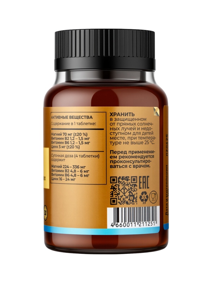 - Комплекс с витаминами B6, B2 и цинком для усиленного эффекта.