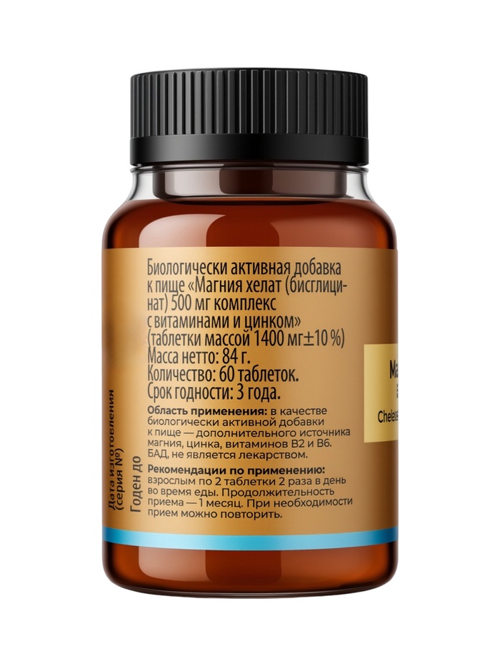 Магний хелат TETRALAB, B6, B2 и цинк, для нормализации работы нервной системы и снятия усталости, 60 таблеток — Характеристики