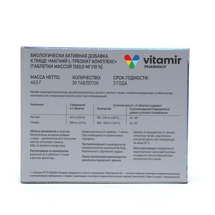 Магний L-треонат комплекс ВИТАМИР с глицином способствует повышению умственной работоспособности и улучшению общего психоэмоционального состояния.