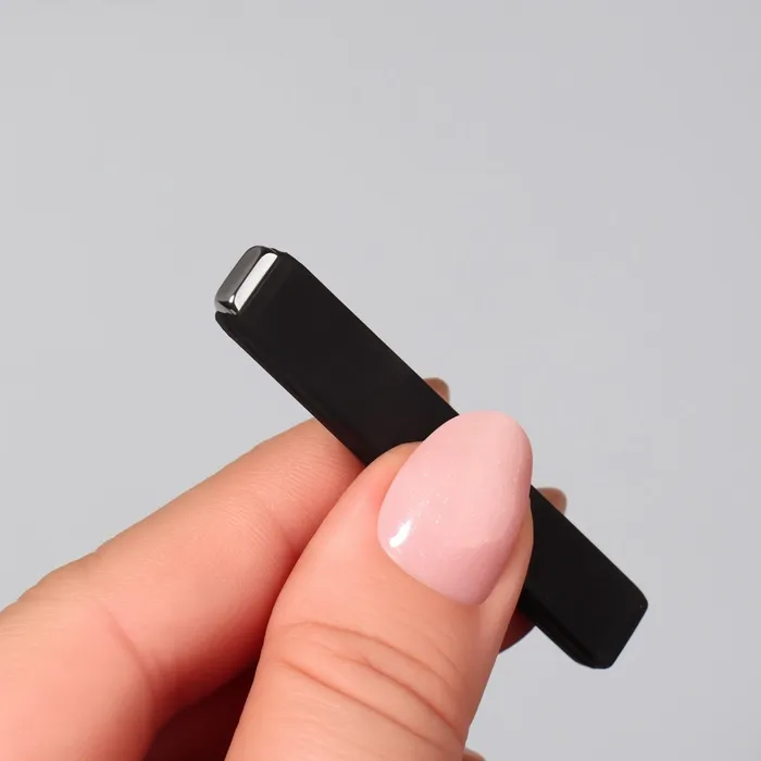 - Возьмите магнит для гель-лака и поднесите его к поверхности ногтя на расстоянии 3 - 5 мм. Держите его перпендикулярно ногтю, чтобы добиться максимального эффекта «кошачьего глаза».