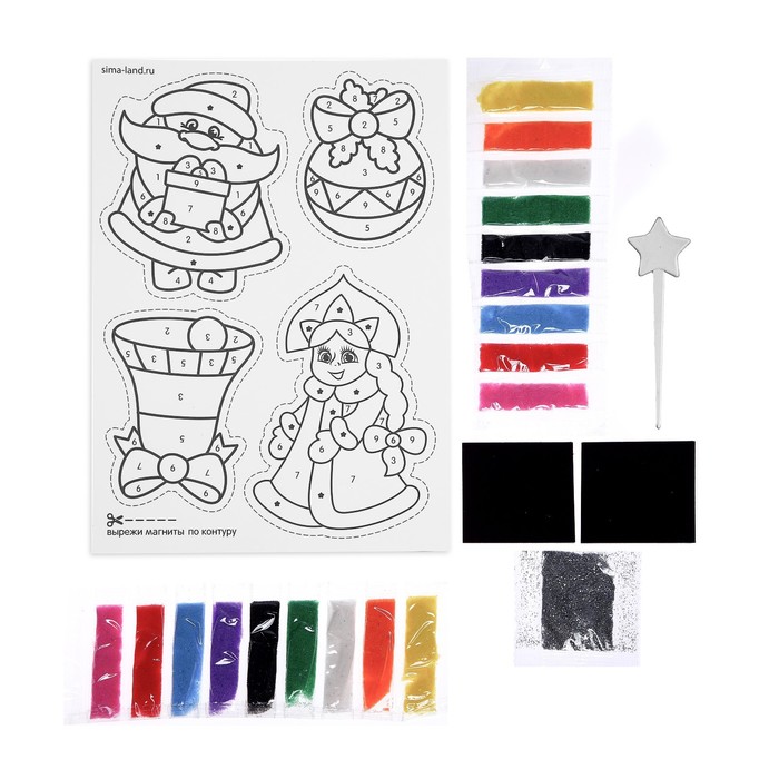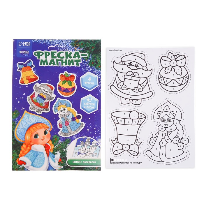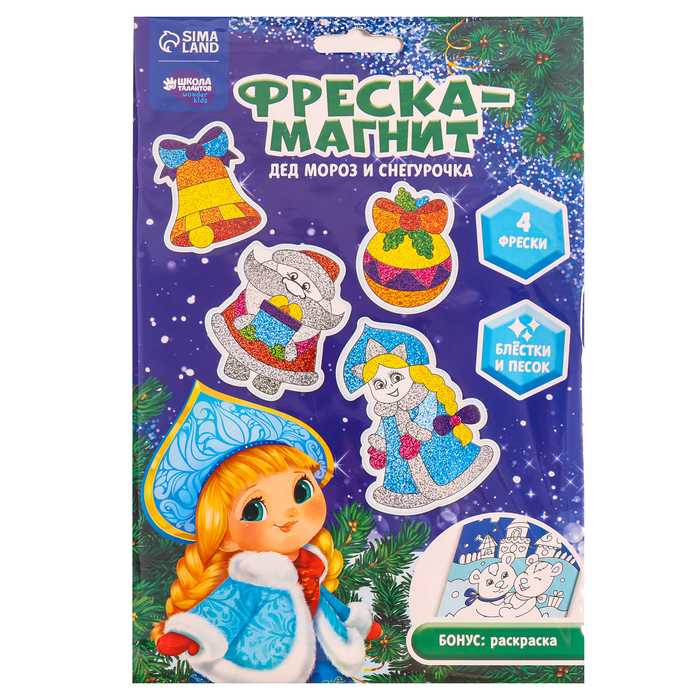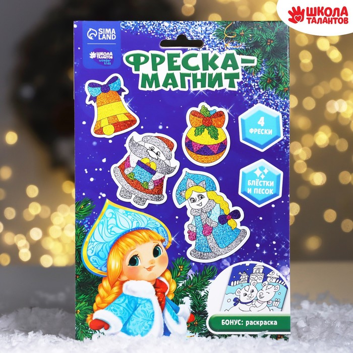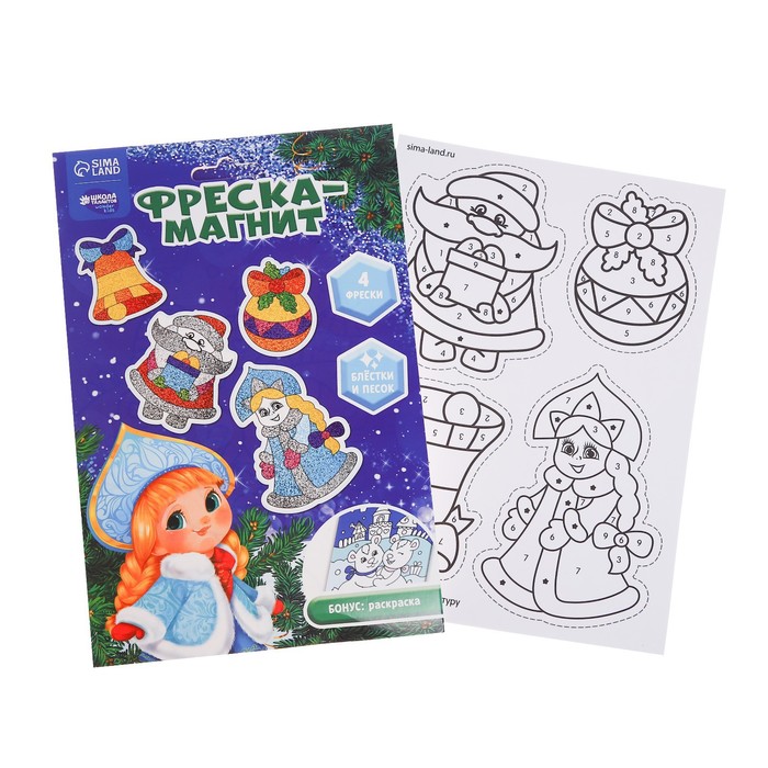 Магнит - фреска своими руками на новый год «Дед Мороз и Снегурочка», 4 шт, набор для творчества — Характеристики