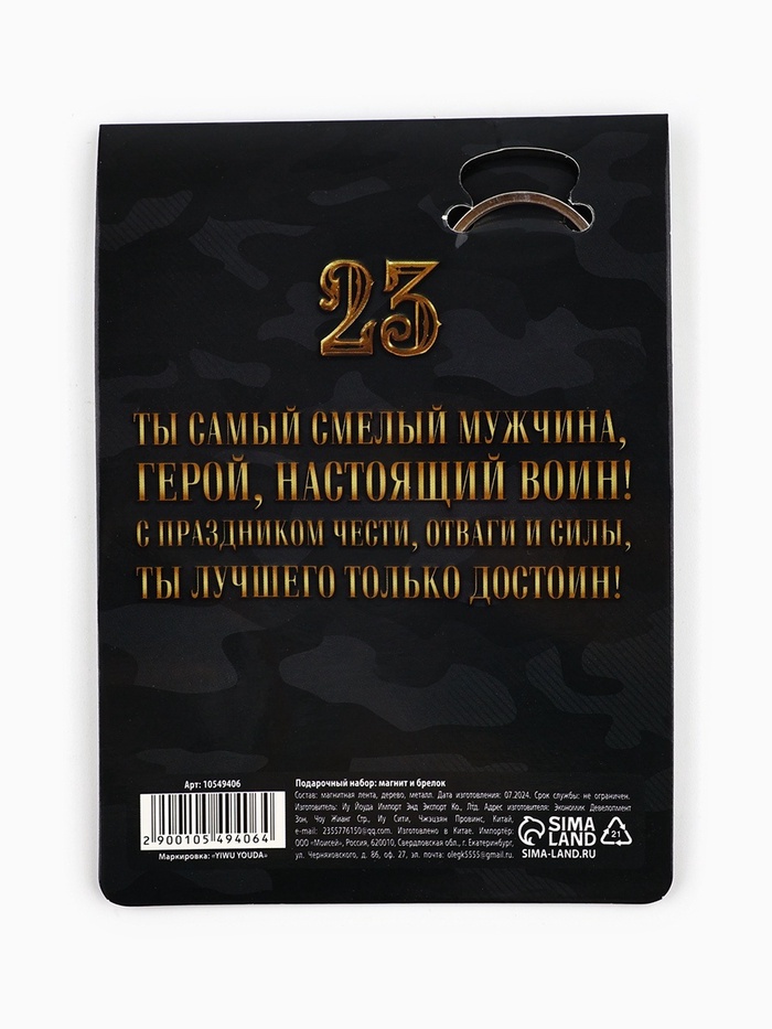 Деревянный брелок - стильный аксессуар, который преобразит любую вещь. Яркий магнит на холодильник - нужный и практичный предмет, без которого просто не обойтись на работе и дома. Такой подарочный набор идеально подойдет в качестве дополнения к подарку на 23 февраля мужу, зятю, брату, папе, дедушке или парню.
