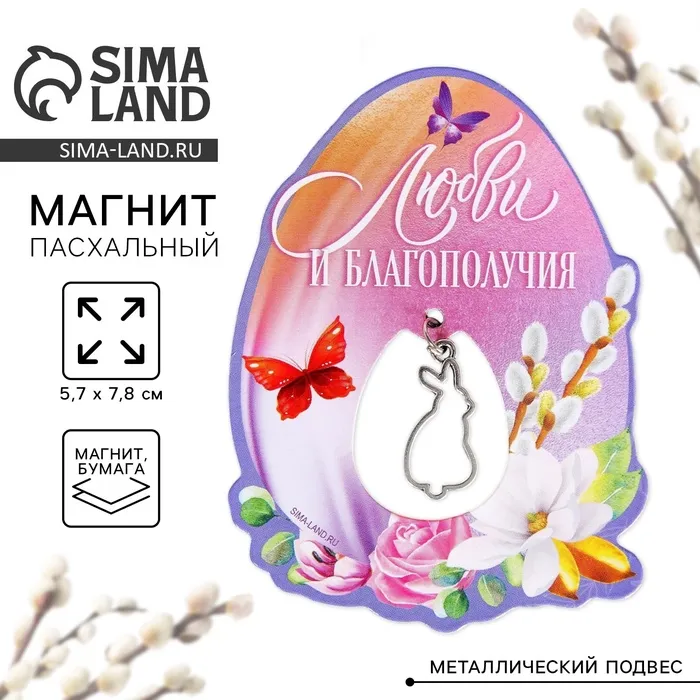 Магнит «Любви и благополучия» на пасху, 5.7 х 7.8 см.