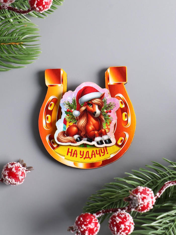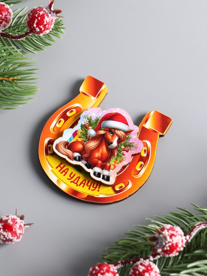 Этот магнит — не просто украшение, а маленький талисман, притягивающий дух праздника и удачу в ваш дом. Плоское полотно с изображением коня станет хранителем очага и символом наступающего года, наполняя пространство теплом и ожиданием чуда.