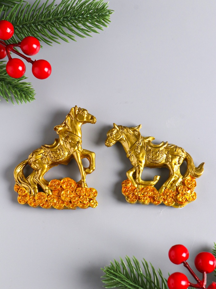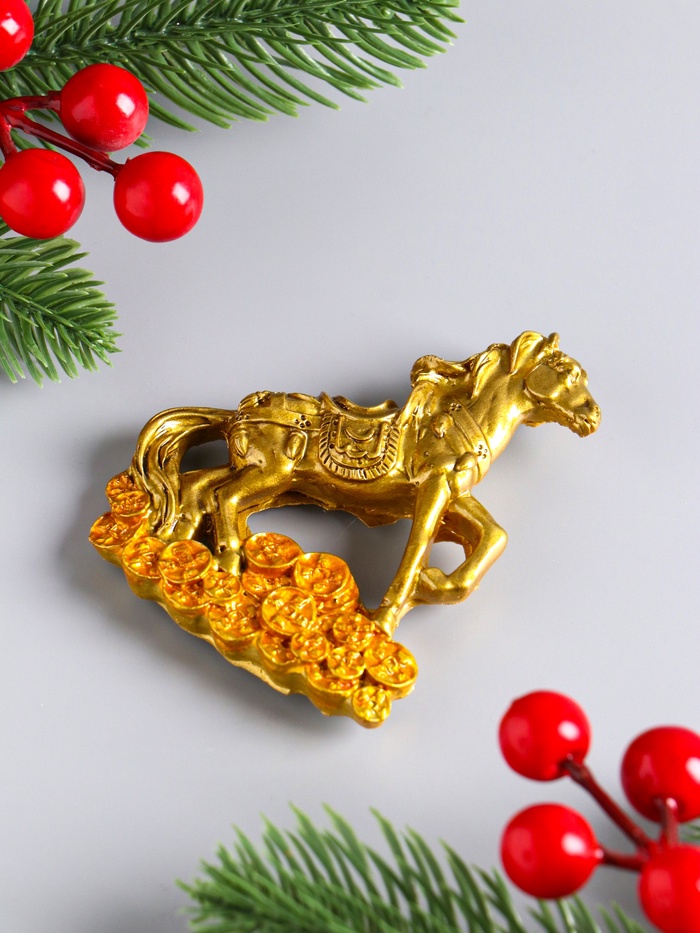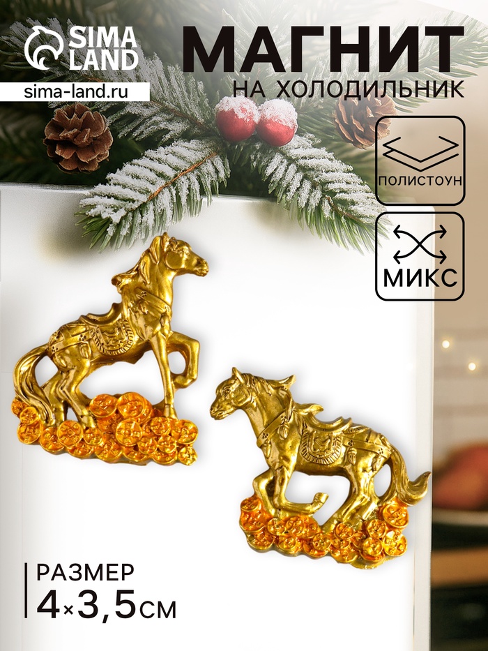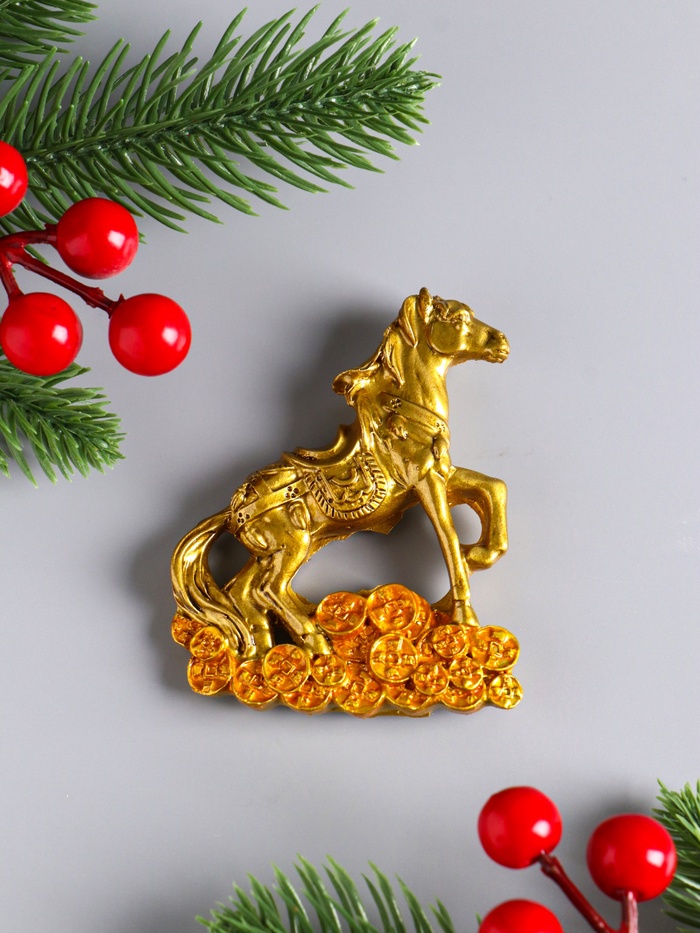 Изготовленный из полистоуна, магнит обладает высокой прочностью и детализированностью, благодаря чему бронзовый оттенок коня и текстура монет выглядят реалистично и выразительно. Лошадь — символ 2026 года по восточному календарю — приносит удачу, успех и стабильность, а китайские монеты усиливают ассоциации с финансовым благополучием и изобилием.