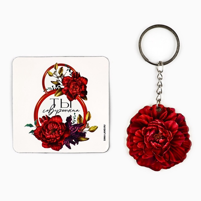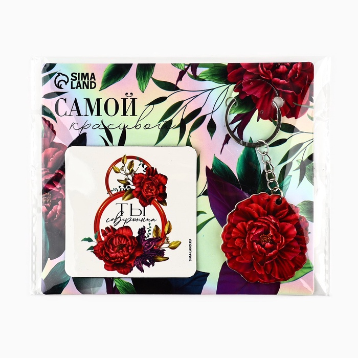Подарочный набор станет отличным подарком на 8 марта! Оригинальный магнит надежно крепится к дверце холодильника или любой другой ровной металлической поверхности. Брелок - сильный аксессуар, который преобразит любую вещь.