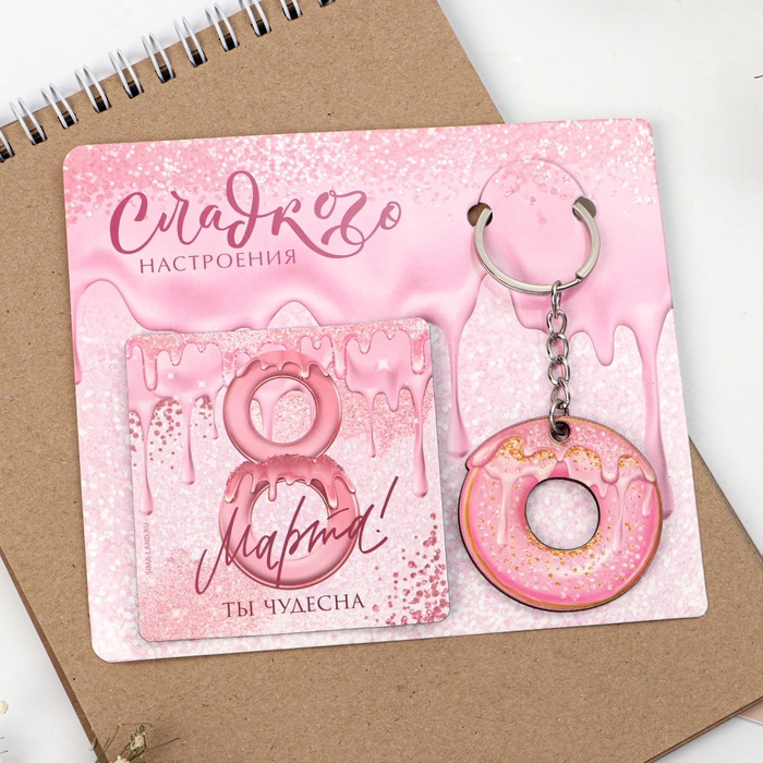 Магнит на холодильник и брелок «Сладкого настроения. 8 Марта», набор 2 предмета — Характеристики