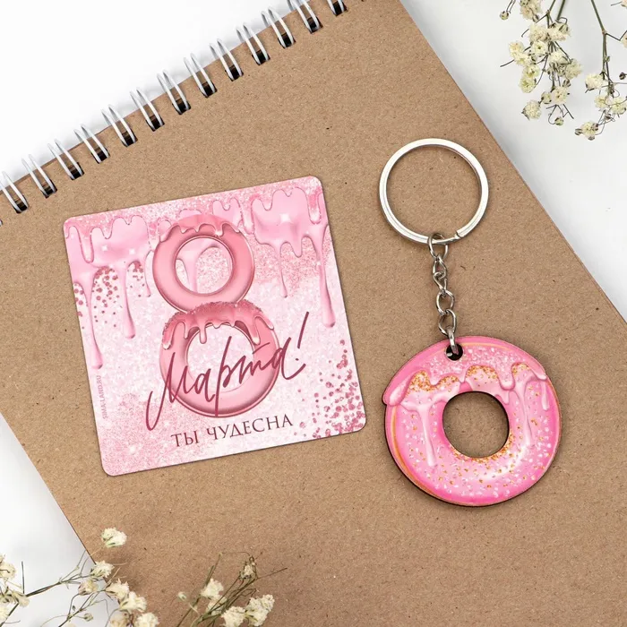 Подарочный набор станет отличным подарком на 8 марта! Оригинальный магнит надежно крепится к дверце холодильника или любой другой ровной металлической поверхности. Брелок - сильный аксессуар, который преобразит любую вещь.