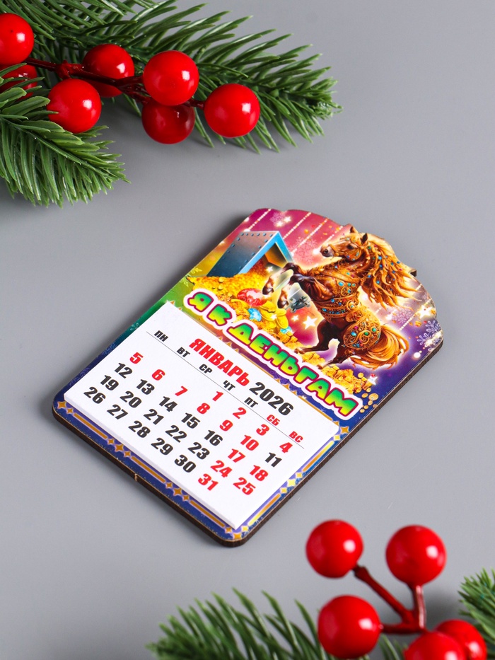Магнит на холодильник и календарь отрывной 2026 «Новогодний конь. Я к деньгам», 9.5×6.5 см — Характеристики