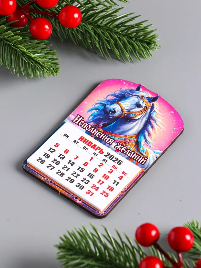 Магнит на холодильник и календарь отрывной 2026 «Новогодний конь. Исполнения желаний», 9.5×6.5 см — Характеристики