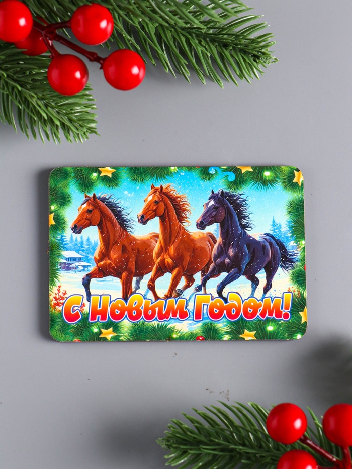 Магнит на холодильник «Конь. С Новым Годом 2026», 9.5×6.5 см