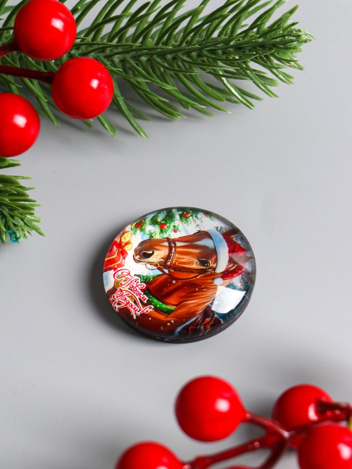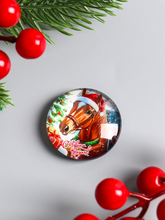 Этот стеклянный магнит с символом 2026 года станет ярким дополнением вашей праздничной коллекции. Миниатюрный конь в колпаке создаёт новогоднее настроение и напоминает о скором празднике каждый раз, когда вы подходите к холодильнику.