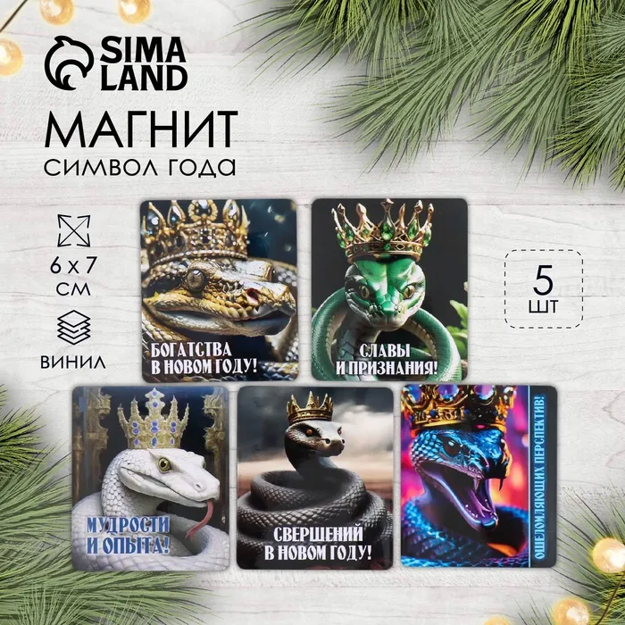 Магнит на холодильник «Королевская змея», винил, 6×7 см, 5 видов, МИКС — Характеристики