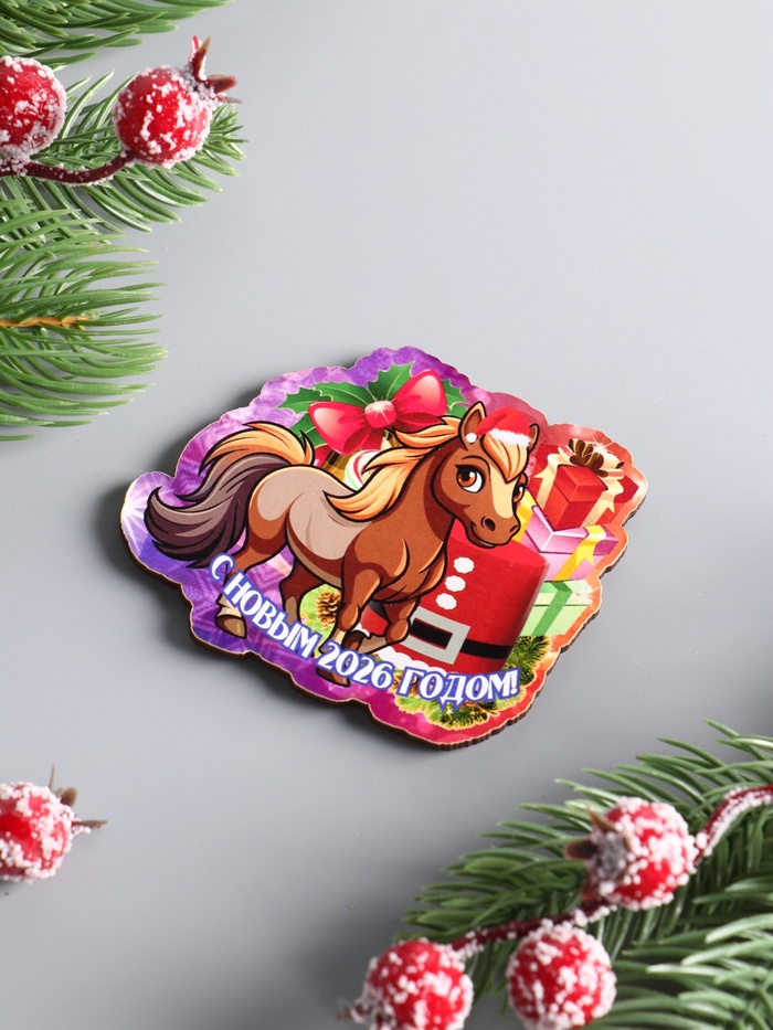 Подарите счастье в новом году с магнитом с изображением лошади. Это уникальное украшение из дерева добавит к вашему интерьеру яркий и праздничный акцент. Символ года 2026, лошадь, принесёт в дом гармонию и успех, став талисманом происшествий и хороших изменений.