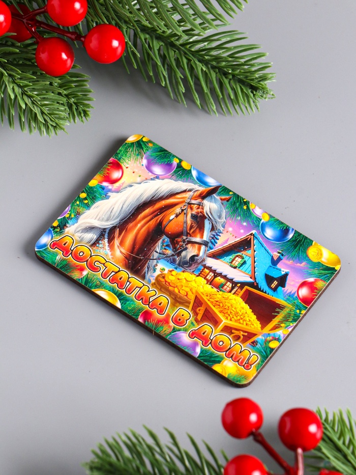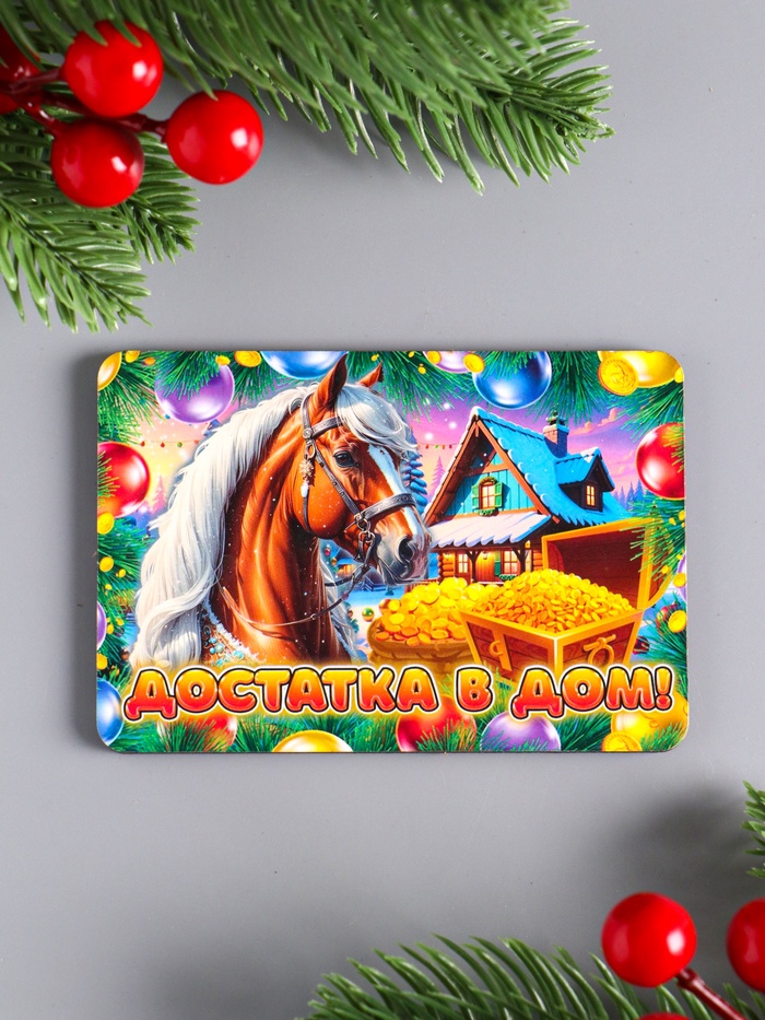 Магнит на холодильник «Новогодняя лошадь. Достатка в дом», 9.5×6.5 см — Характеристики