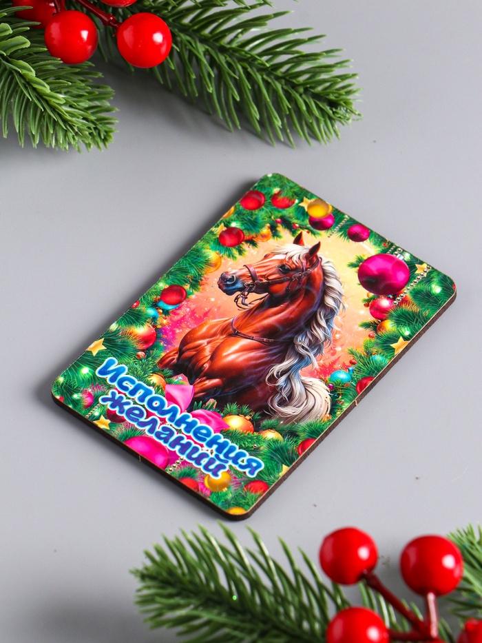 Магнит на холодильник «Новогодняя лошадь. Исполнения желаний», 9.5×6.5 см — Характеристики