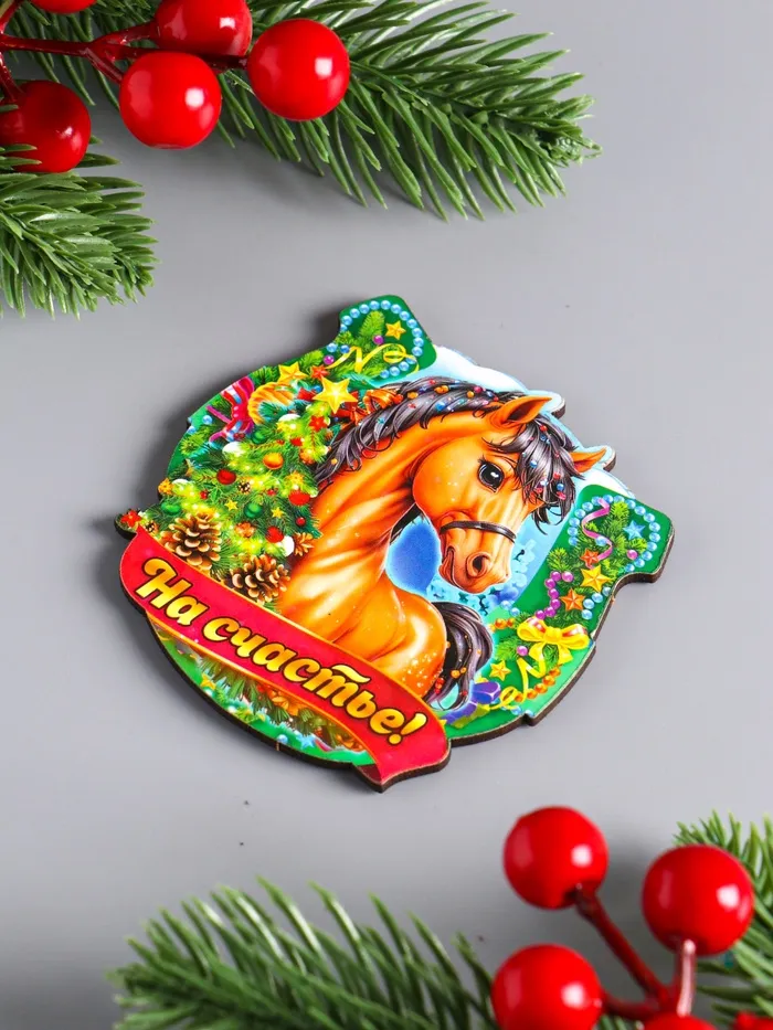 Магнит на холодильник «Новогодняя подкова с конём. На счастье», 7×7 см — Характеристики
