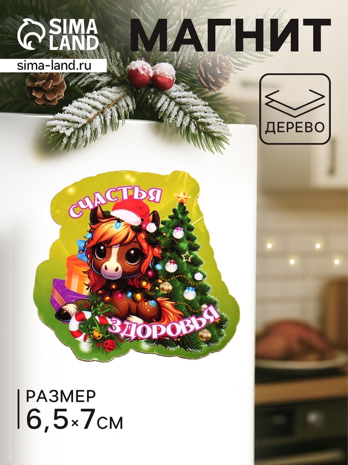 Магнит на холодильник «Лошадка. Счастья, Здоровья», 6.5×7 см