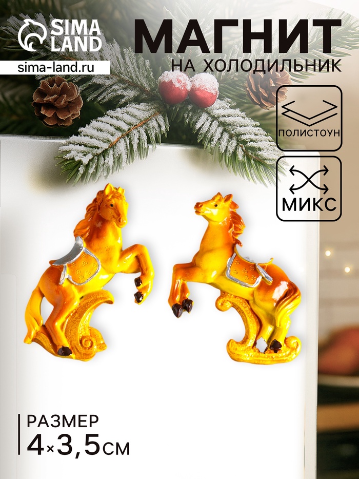 Магнит на холодильник «Конь с седлом на золотой волне», 4.5×8.3 см, МИКС