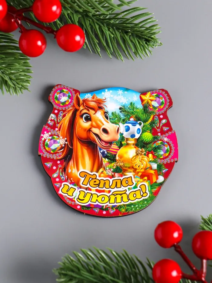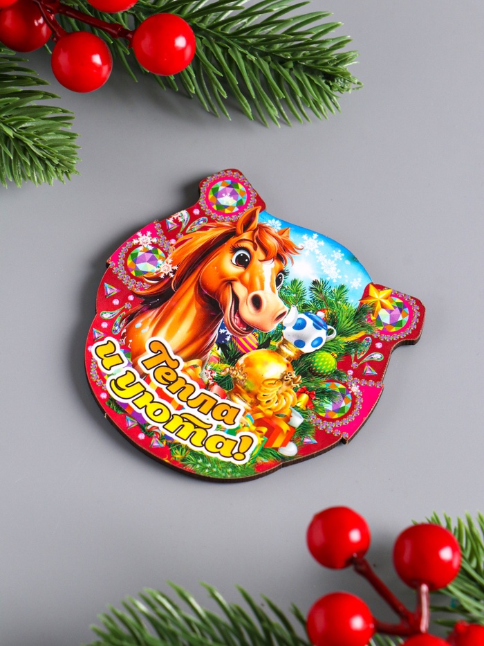 Магнит на холодильник «Новогодняя подкова с конём. Тепла и уюта», 7×7 см — Характеристики
