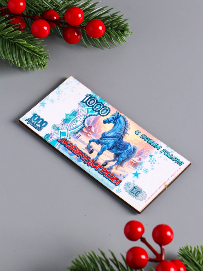 Магнит на холодильник «Новогодний конь на купюре 1000 любви и достатка», 12×6 см — Характеристики