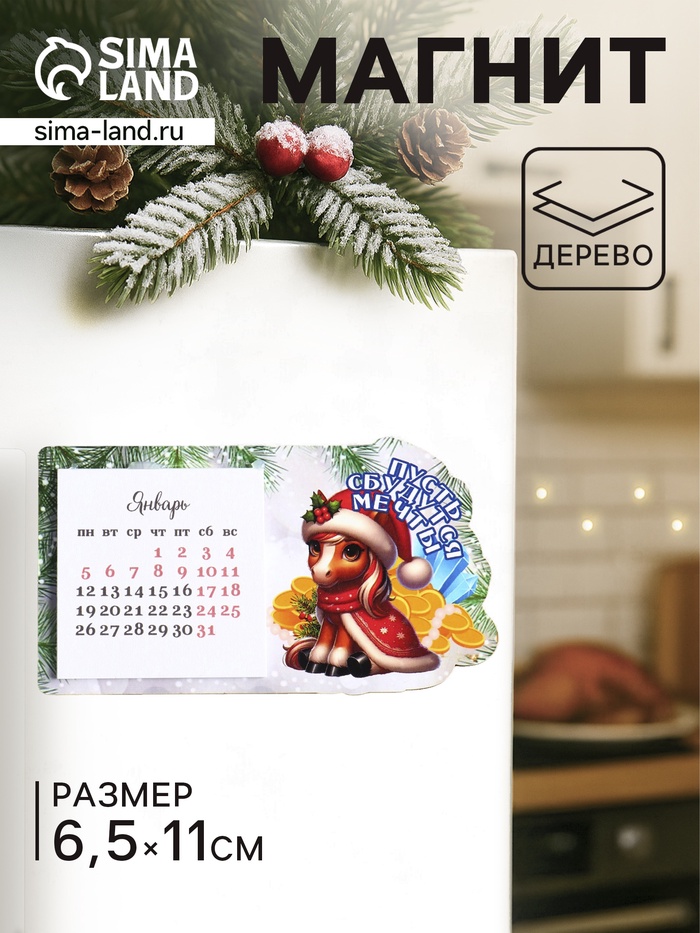 Магнит на холодильник с календарём 2026 «Лошадь. Пусть сбудутся мечты», 6×11 см