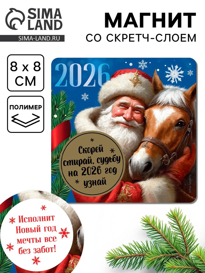 Магнит новогодний со скретч-слоем «Судьбу на 2026 год узнай», 8 х 8 см