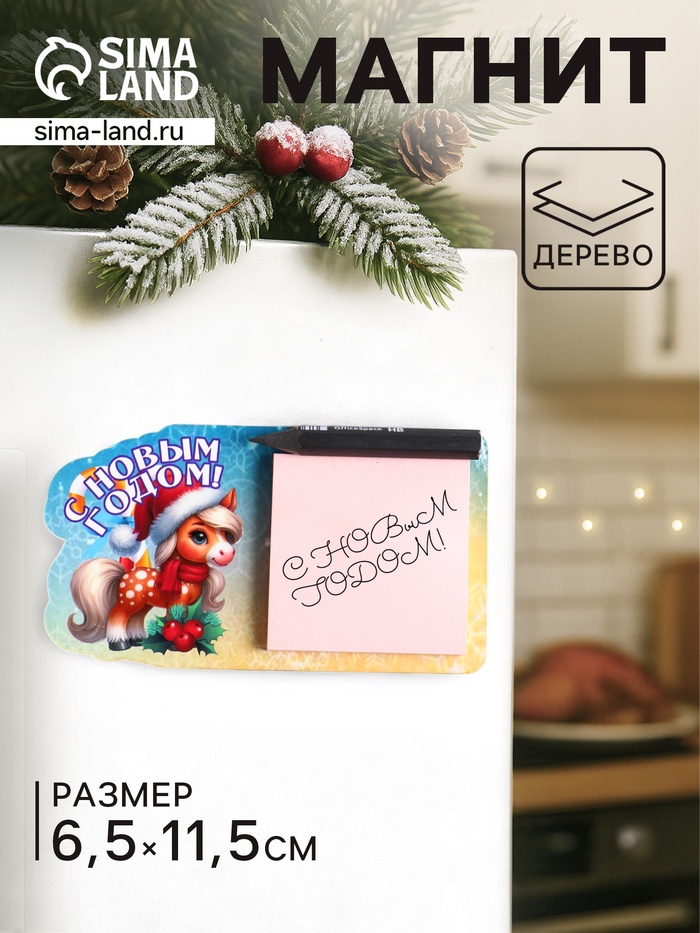 Магнит на холодильник с блоком для заметок «Лошадь. С Новым годом 2026», 6.5×11.5 см