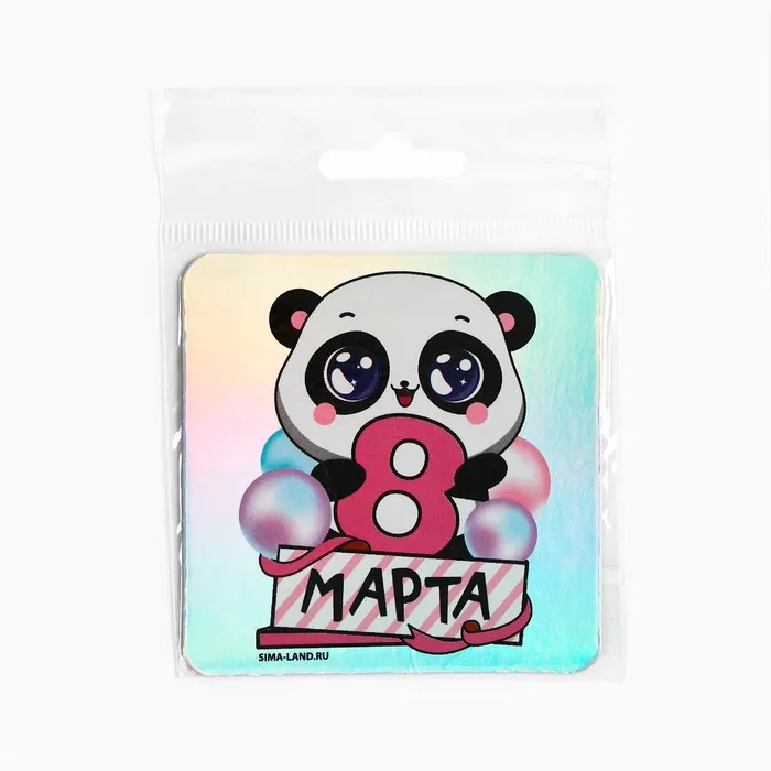Магнит на холодильник «Панда. 8 Марта», голография, 7×7 см