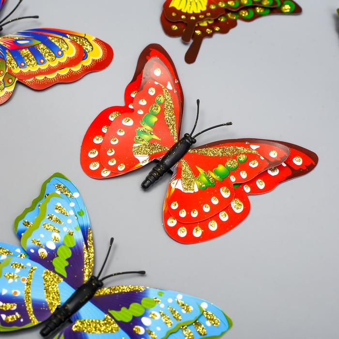Магнит на холодильник пластик «Бабочки двойные крылья», золотой глиттер 7×10 см, МИКС — Характеристики