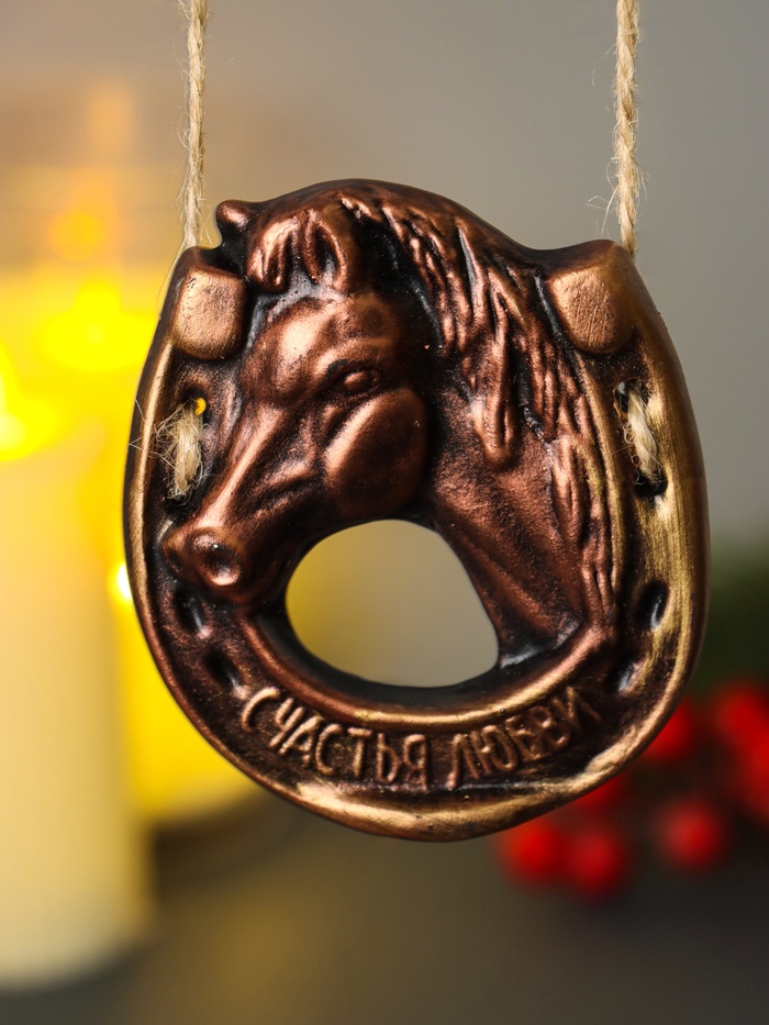 Магнит на холодильник «Подкова Лошадь», подвесной декор, 6.8×8.4 см, бронза — Характеристики