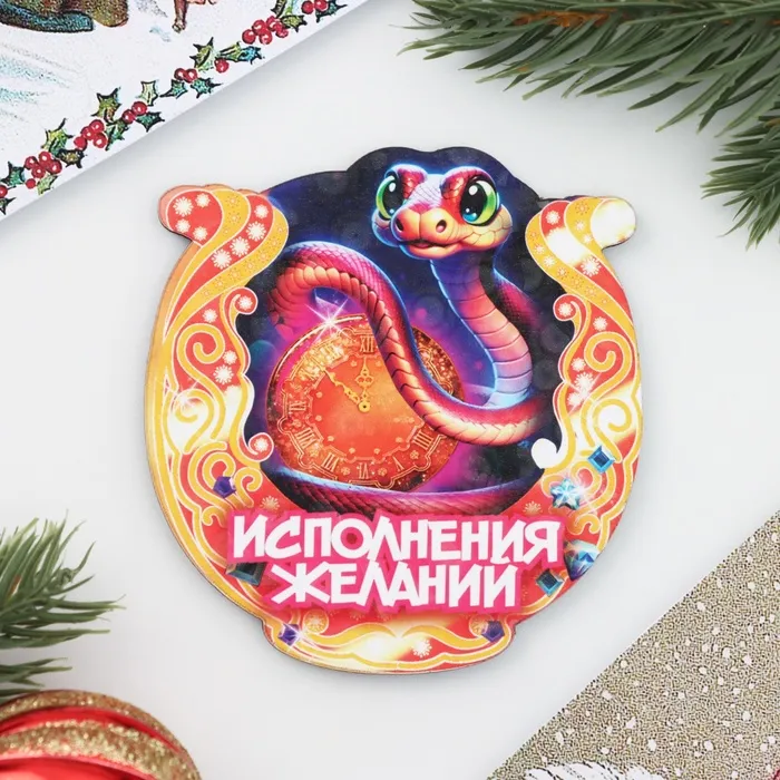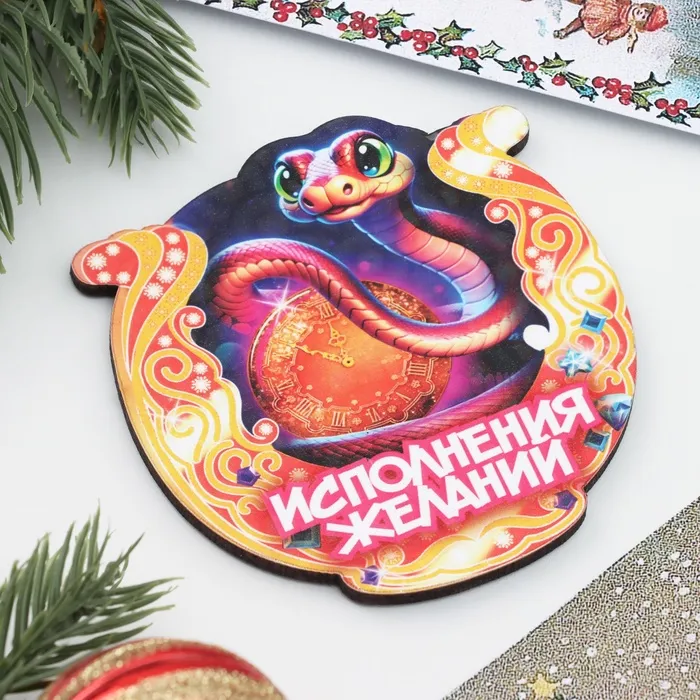 Магнит в виде подковы с изображением змеи станет стильным акцентом в вашем доме и символом исполнения желаний. Изготовленный из качественного дерева и выполненный в зелёном цвете, он не только украсит вашу кухню, но и добавит атмосферу уюта и гармонии. Этот аксессуар идеально впишется в новогоднюю коллекцию 2025 года, привнося в ваш интерьер нотки удачи и защиты.