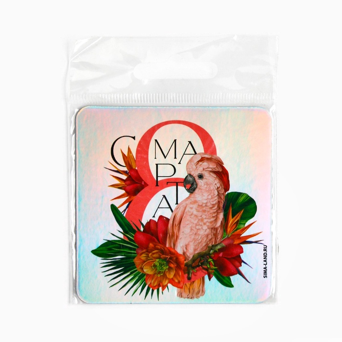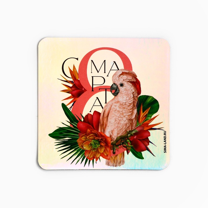 Магнит на холодильник «Попугай. 8 Марта», голография, 7×7 см