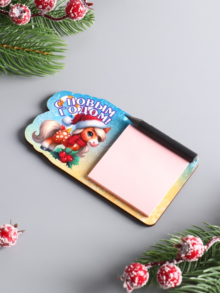 Компактный размер (6.5×11.5 см) делает его идеальным решением для размещения на холодильнике, офисной панели или любой другой металлической поверхности, где важно сохранять важные пометки на виду. Натуральный материал обеспечивает приятное тактильное восприятие и экологичность, а праздничный дизайн создает соответствующее настроение в преддверии главного зимнего торжества.