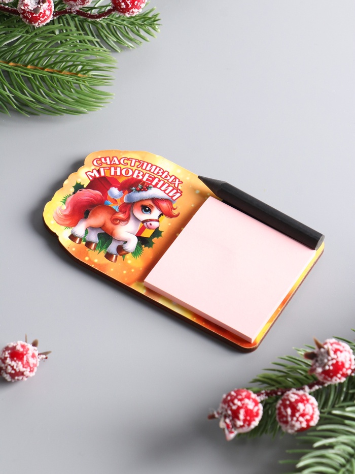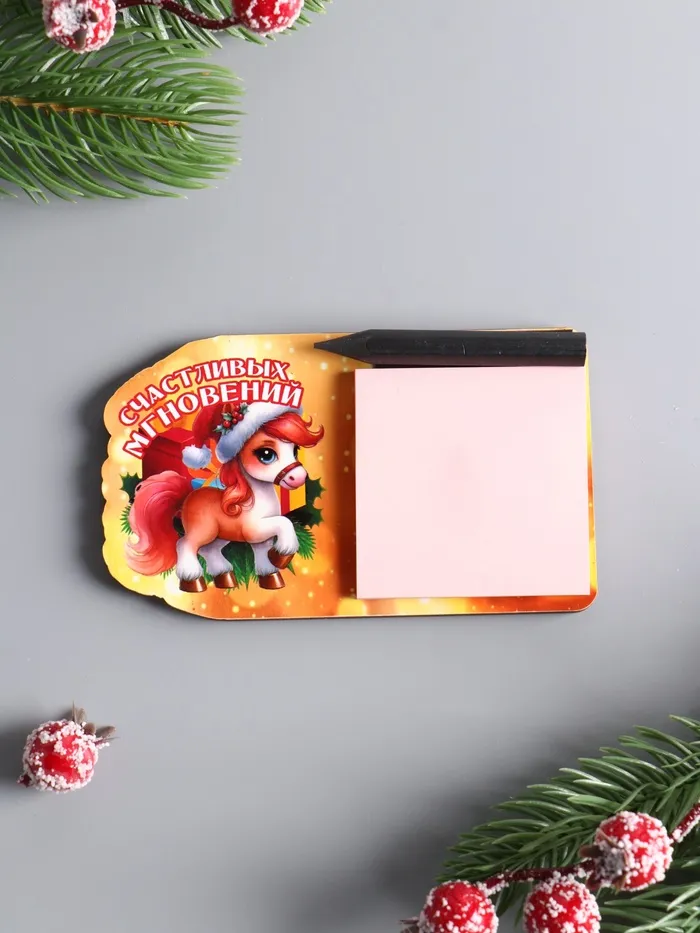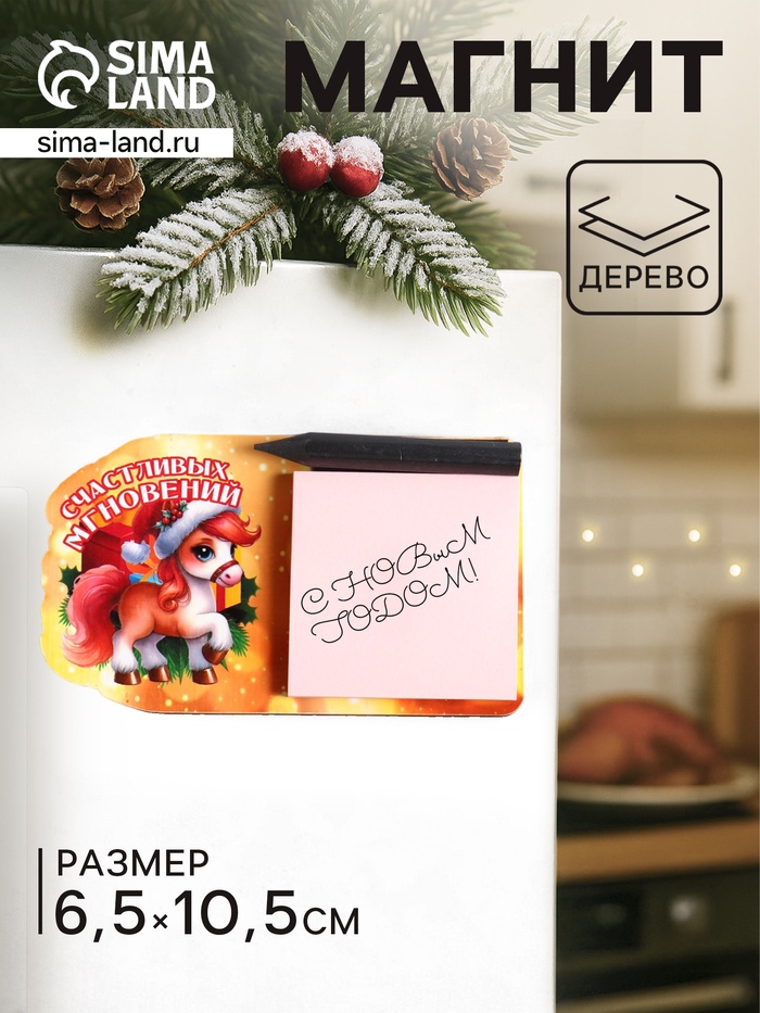 Этот деревянный магнит с блокнотом для записей станет стильным и функциональным дополнением вашего холодильника. Он не просто удерживает важные списки и напоминания, но и служит элегантным символом наступающего года, принося в дом атмосферу тепла и ожидания счастливых событий.
