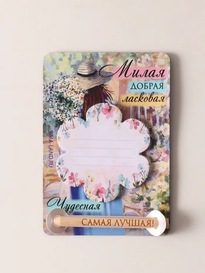Магнит на холодильник с блоком для записей и карандашом «Милая, добрая, ласковая», 9×13 см — Характеристики