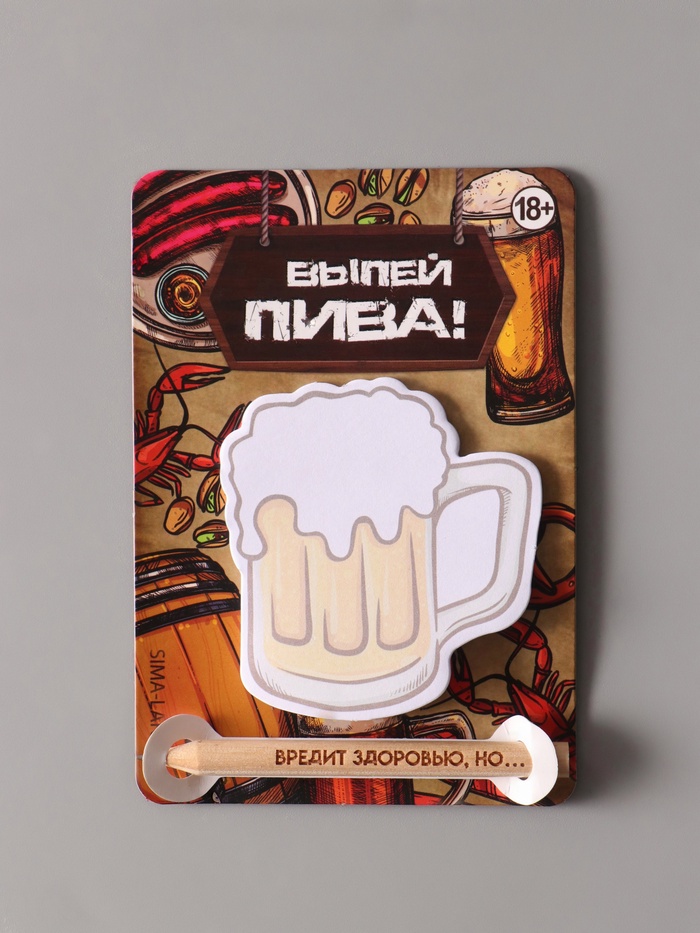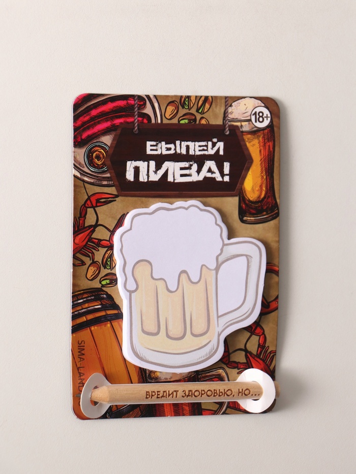 Магнит на холодильник с блоком для записей и карандашом «Выпей пива!», 9×13 см — Характеристики