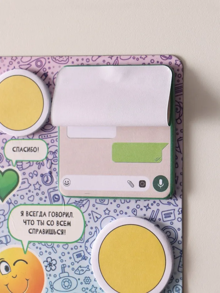 Этот магнитный блок не только украсит вашу кухню, но и поможет организовать ваши мысли и дела. Его яркий и вдохновляющий дизайн делает его незаменимым помощником в вашем доме. Начните каждый день с улыбки и уверенности в своих силах, используя этот уникальный аксессуар!