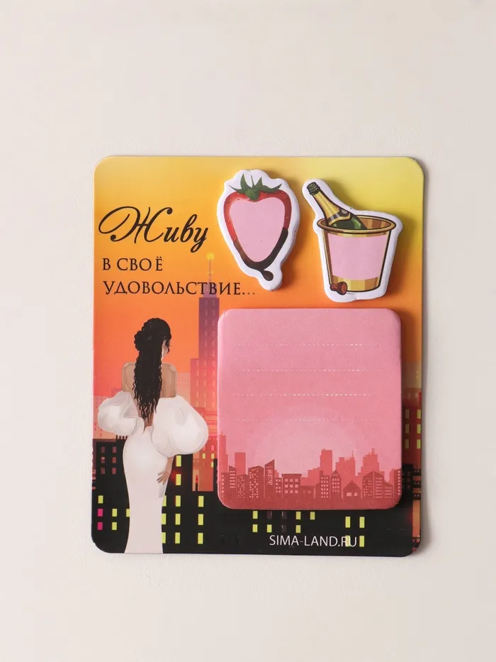 Представьте себе магнит, который не только украсит ваш холодильник, но и станет верным помощником в организации ваших мыслей и идей. Этот аксессуар с блоком для записей и стикерами «Живу в своё удовольствие...» идеально подходит для женщин, добавляя яркие акценты в повседневную жизнь и вдохновляя на творчество. С его помощью вы сможете легко фиксировать важные заметки, списки покупок или просто приятные мысли.