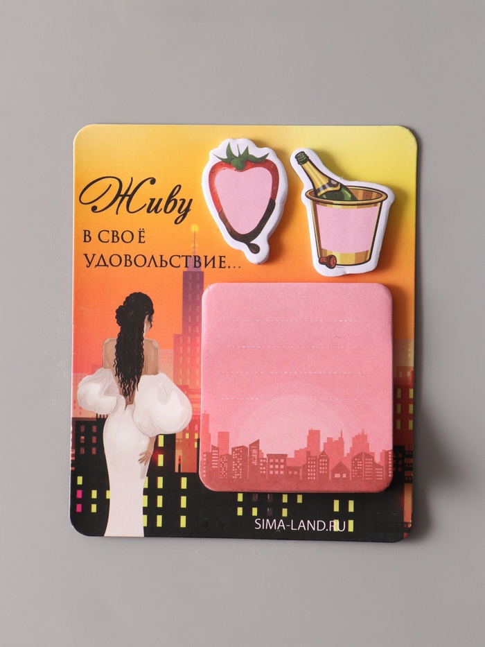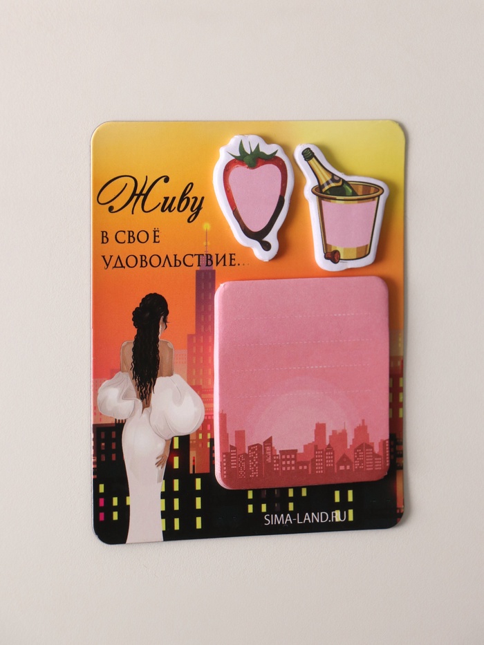 Магнит на холодильник с блоком для записей и стикерами «Живу в своё удовольствие...», 10×12 см — Характеристики