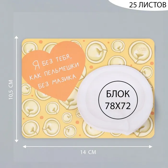 Магнит на холодильник с блоком для записей «Я без тебя, как пельмешки без мазика», 14×10.5 см — Характеристики