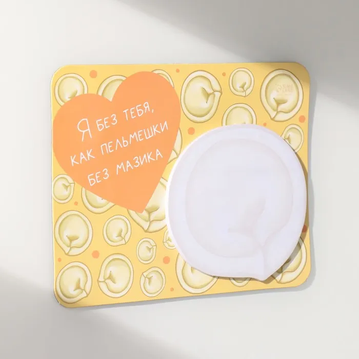 Магнит с блоком для записей станет ярким акцентом на вашем холодильнике и источником вдохновения для приятных сообщений. С его помощью легко оставлять заметки, напоминания или забавные фразы, которые поднимут настроение вам и вашим близким. Дизайн с сердечками и игривой надписью «Я без тебя, как пельмешки без мазика» добавляет нотку юмора и романтики в повседневную жизнь.