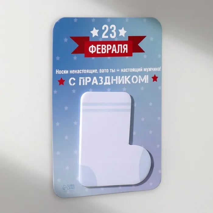 Магнит на холодильник с блоком для записей «Носки ненастоящие, зато ты - настоящий мужчина!», 10.6×14.9 см — Характеристики