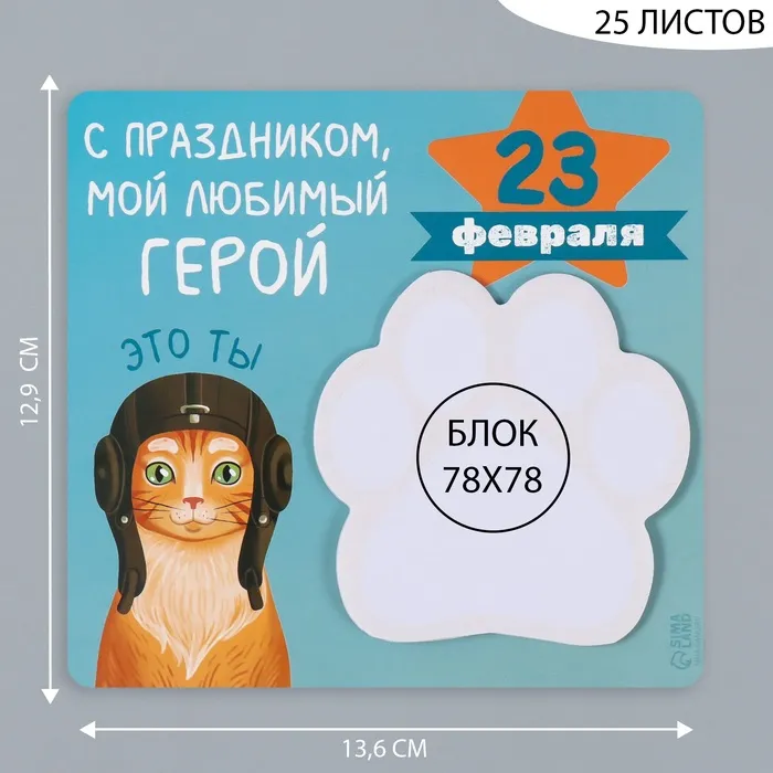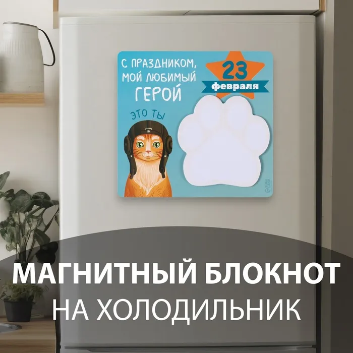 Магнит на холодильник с блоком для записей «С праздником мой, любимый герой», 13.6×12.9 см — Характеристики